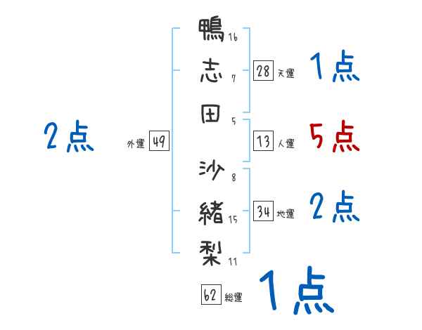 鴨志田沙緒梨さんの画数の鑑定結果