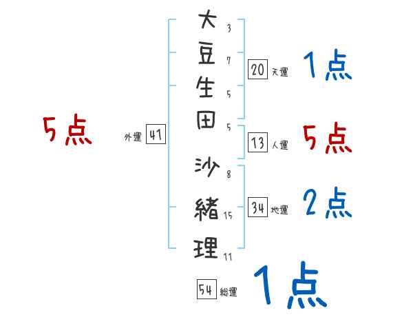 大豆生田沙緒理さんの画数の鑑定結果