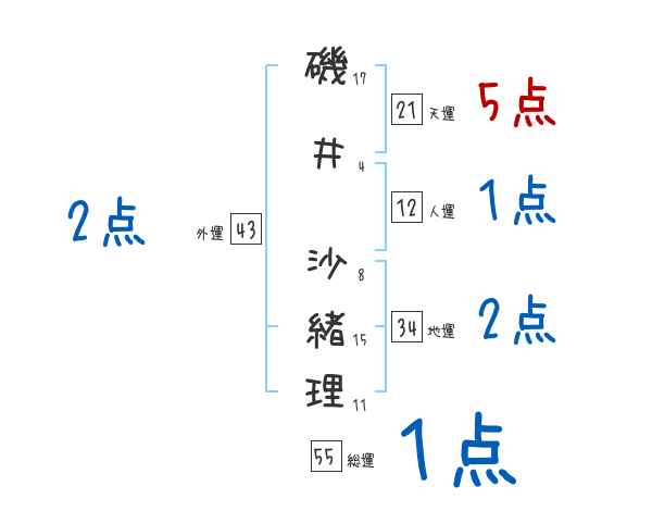 磯井沙緒理さんの画数の鑑定結果