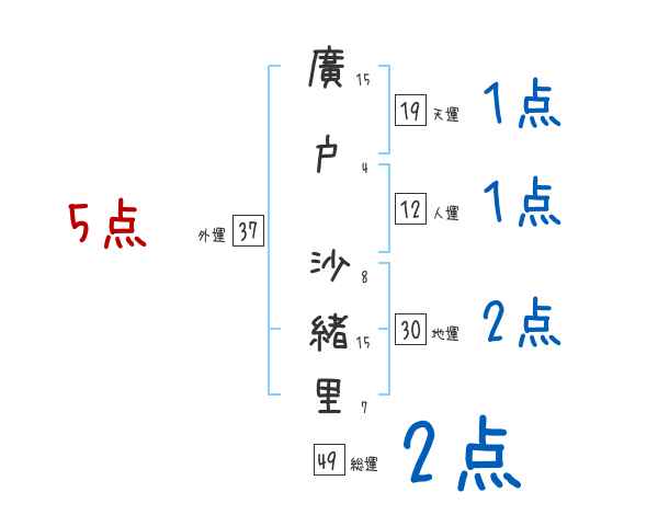 廣戸沙緒里さんの画数の鑑定結果