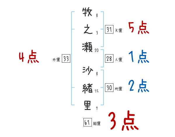 牧之瀬沙緒里さんの画数の鑑定結果