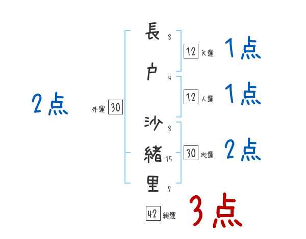 総運![]() | 長戸沙緒里さんの総運は42画の3つ星!病気に注意。多芸であるが消極的でおとなしい。 あなたの人生を表す1番重要な運勢です。生涯を通じて影響する総合運となり、主に50歳以降の晩年期に影響を及ぼします。 |
