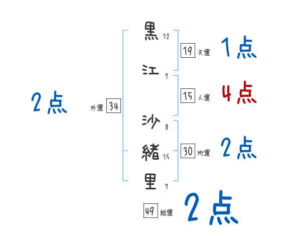 黒江沙緒里さんの画数の鑑定結果