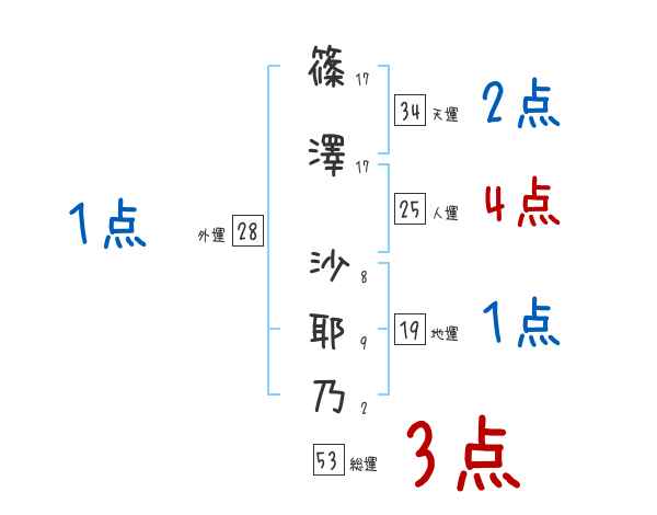 外運![]() | 篠澤沙耶乃さんの外運は28画の1つ星!家庭環境に注意。スポーツで活躍できる能力があるかも。 生活面を象徴する運勢です。外部から受ける影響力を表し、結婚運、家庭運や職場、環境への順応性を表します。 |