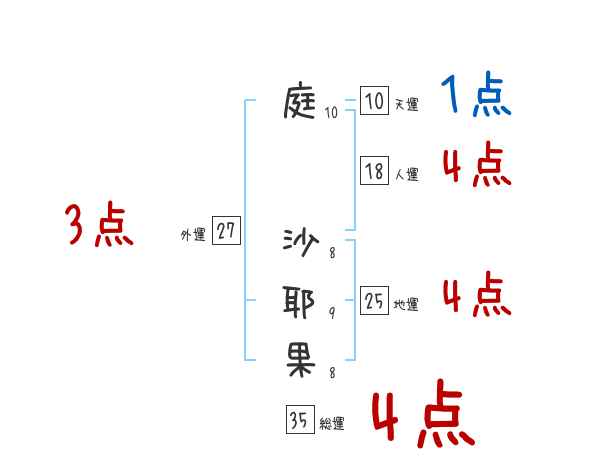 庭沙耶果さんの画数の鑑定結果