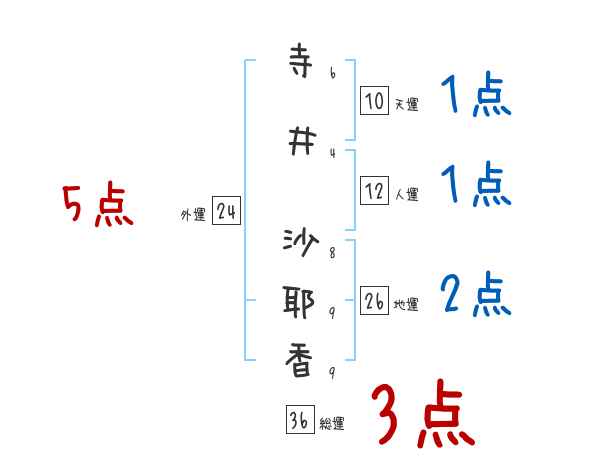 寺井沙耶香さんの画数の鑑定結果