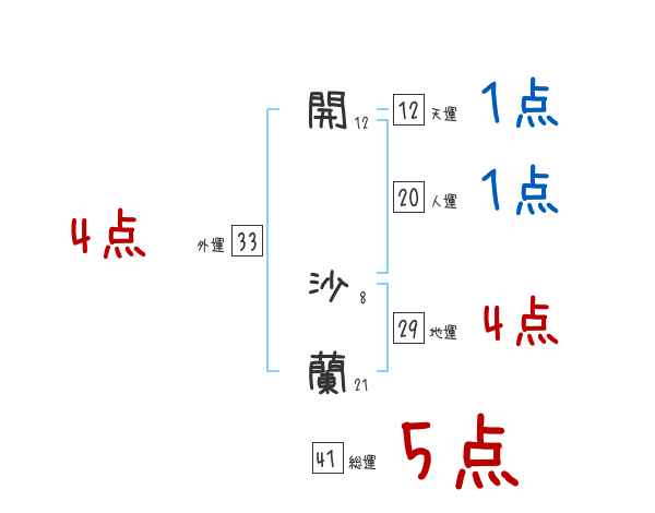 開沙蘭さんの画数の鑑定結果