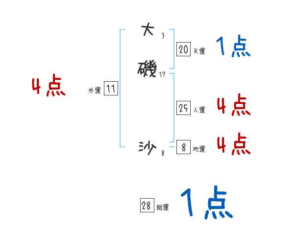 大磯沙さんの画数の鑑定結果