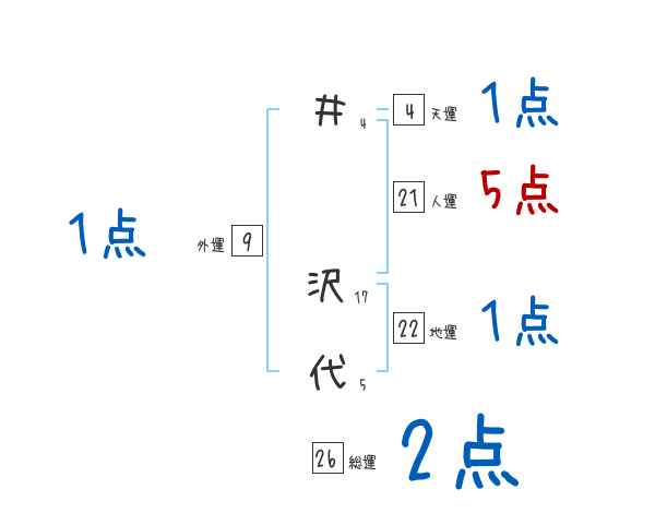 井沢代さんの画数の鑑定結果