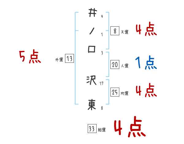 地運![]() | 井ノ口沢東さんの地運は25画の4つ星!個性があり才能があふれる。強運の持ち主で発展する。 個性を表す基礎的な運勢です。性格形成や対人関係、行動力など家庭環境に影響されます。主に誕生してから20歳くらいまでの若年期の運勢を表します。 |