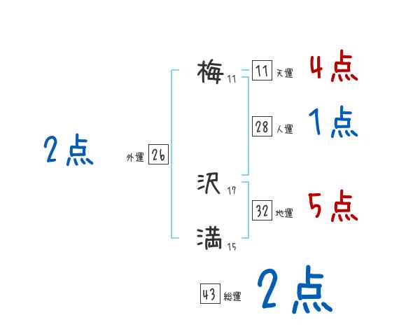 梅沢満さんの画数の鑑定結果