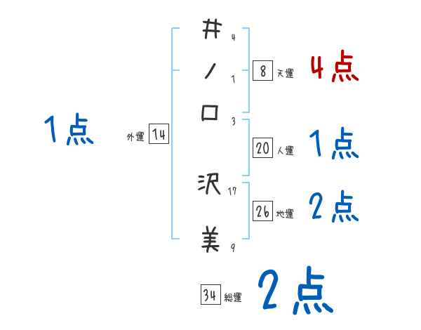 井ノ口沢美さんの画数の鑑定結果