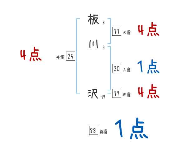 板川沢さんの画数の鑑定結果