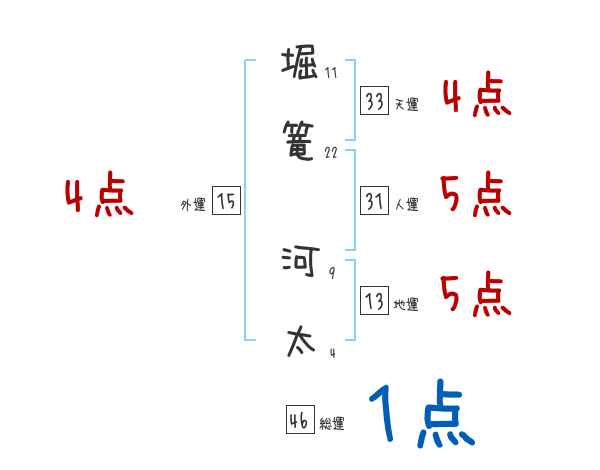 堀篭河太さんの画数の鑑定結果