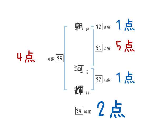 朝河輝さんの画数の鑑定結果