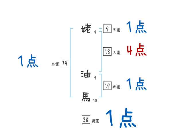姥油馬さんの画数の鑑定結果