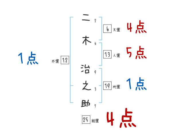 二木治之助さんの画数の鑑定結果