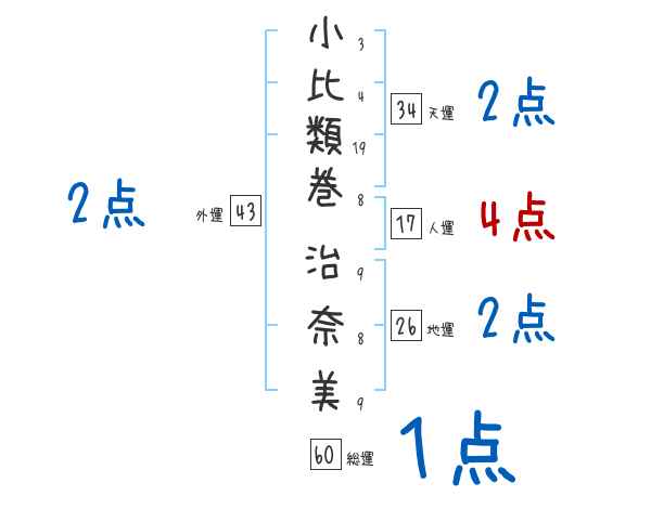 小比類巻治奈美さんの画数の鑑定結果