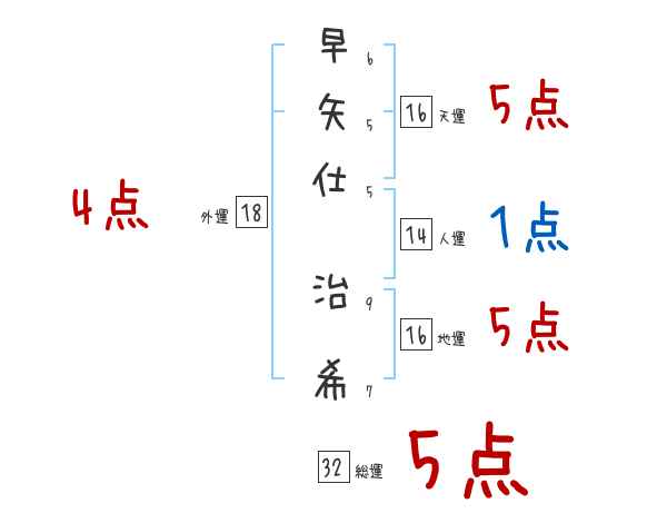 早矢仕治希さんの画数の鑑定結果