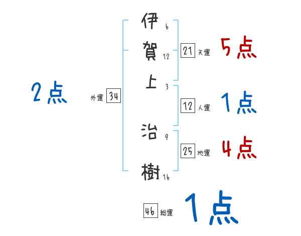 外運![]() | 伊賀上治樹さんの外運は34画の2つ星!独創性に優れるが、自尊心が強く災難に注意しましょう。 生活面を象徴する運勢です。外部から受ける影響力を表し、結婚運、家庭運や職場、環境への順応性を表します。 |