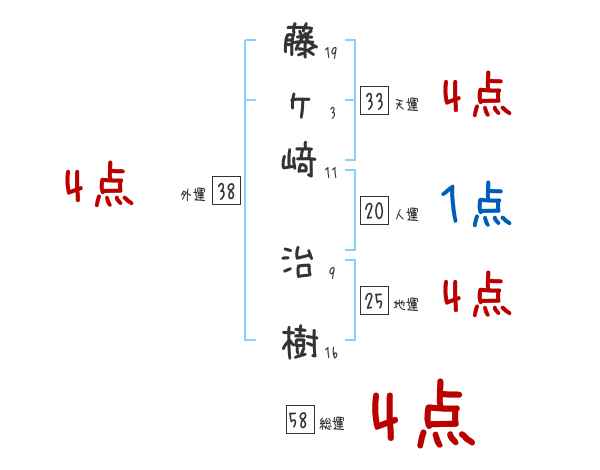 藤ヶ﨑治樹さんの画数の鑑定結果