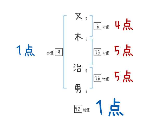 地運![]() | 又木治男さんの地運は16画の5つ星!人望が厚く大きく発展する。逆転成功が見える。 個性を表す基礎的な運勢です。性格形成や対人関係、行動力など家庭環境に影響されます。主に誕生してから20歳くらいまでの若年期の運勢を表します。 |