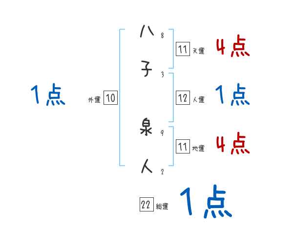 八子泉人さんの画数の鑑定結果