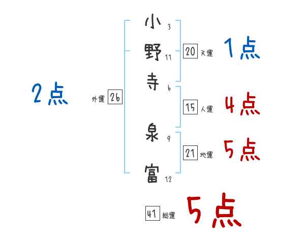 小野寺泉富さんの画数の鑑定結果