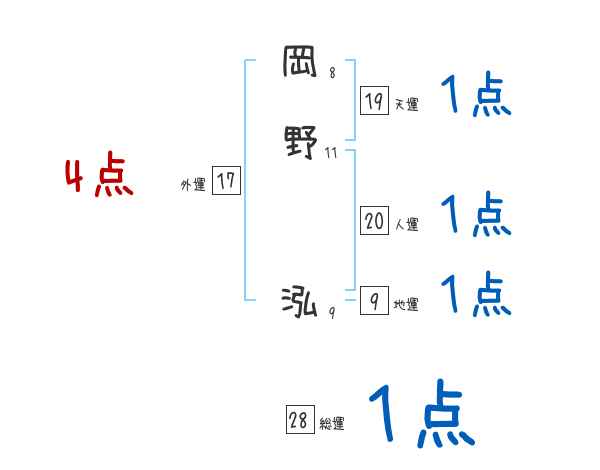岡野泓さんの画数の鑑定結果