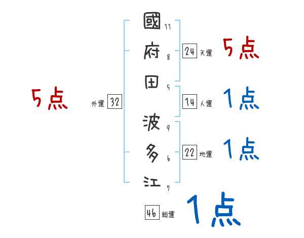 天運![]() | 國府田波多江さんの天運は24画の5つ星!家庭運が良く順調な人生。金運にも恵まれる。 家系が持つ宿命的な運勢を表します。祖先から受け継いだ苗字ですので自分の力が及びません。家柄を象徴します。 |