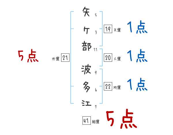 外運![]() | 矢ヶ部波多江さんの外運は21画の5つ星!統率力がある。独立し成功する。名誉を手に入れる。 生活面を象徴する運勢です。外部から受ける影響力を表し、結婚運、家庭運や職場、環境への順応性を表します。 |