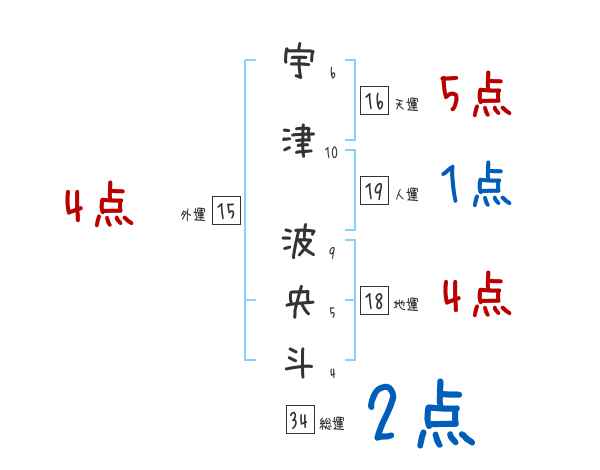 総運![]() | 宇津波央斗さんの総運は34画の2つ星!独創性に優れるが、自尊心が強く災難に注意しましょう。 あなたの人生を表す1番重要な運勢です。生涯を通じて影響する総合運となり、主に50歳以降の晩年期に影響を及ぼします。 |