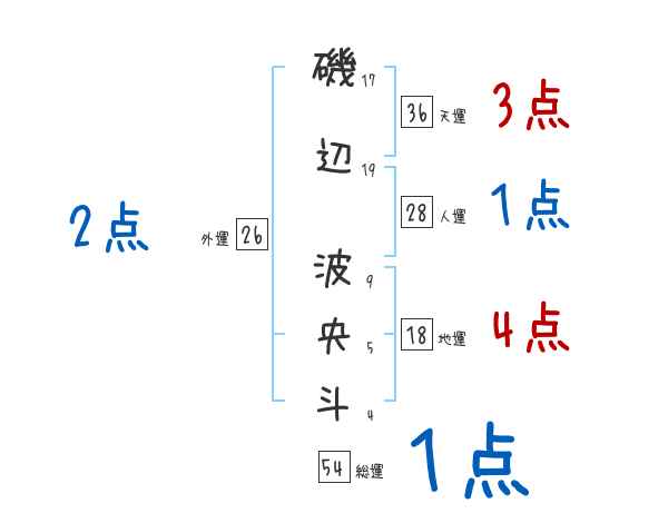 磯辺波央斗さんの画数の鑑定結果