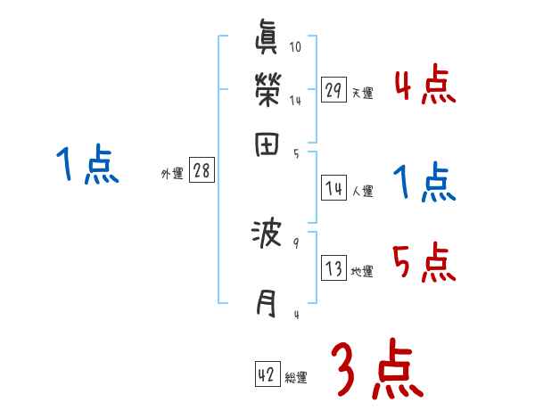 眞榮田波月さんの画数の鑑定結果