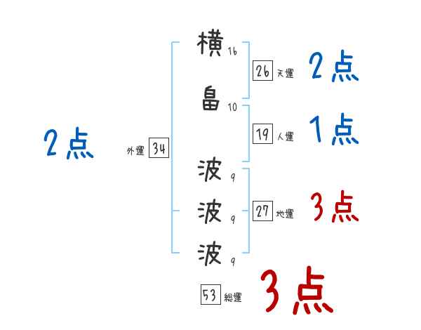 総運![]() | 横畠波波波さんの総運は53画の3つ星!やや見栄っ張りで虚栄心がある。散財に注意。 あなたの人生を表す1番重要な運勢です。生涯を通じて影響する総合運となり、主に50歳以降の晩年期に影響を及ぼします。 |