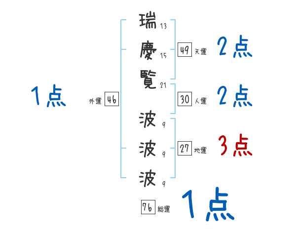 瑞慶覧波波波さんの画数の鑑定結果