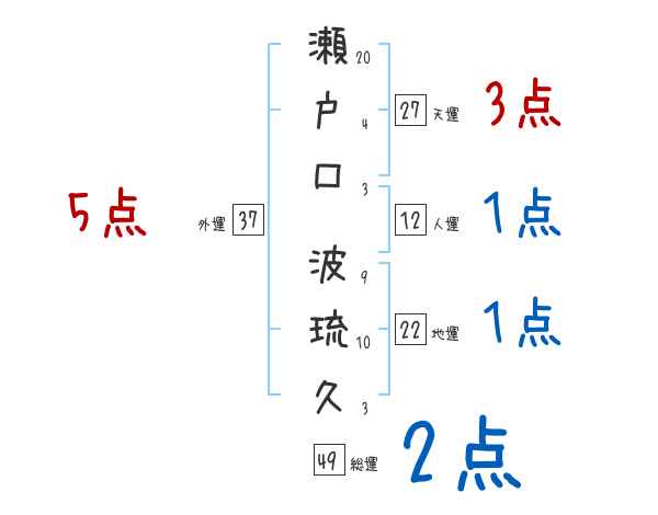 瀬戸口波琉久さんの画数の鑑定結果