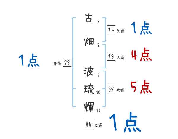 天運![]() | 古畑波琉輝さんの天運は14画の1つ星!人に対して優しいがストレスを溜め込みがち。人間関係のトラブルを避けるよう気をつけましょう。 家系が持つ宿命的な運勢を表します。祖先から受け継いだ苗字ですので自分の力が及びません。家柄を象徴します。 |
