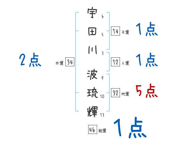 宇田川波琉輝さんの画数の鑑定結果