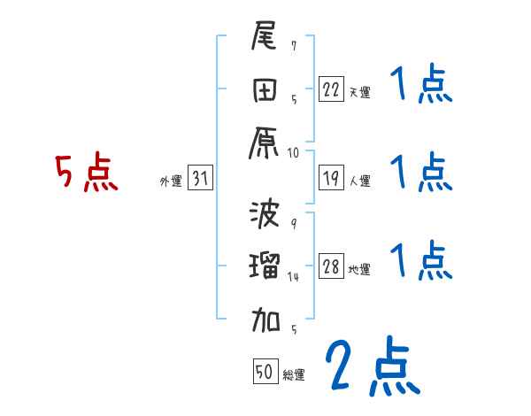 外運![]() | 尾田原波瑠加さんの外運は31画の5つ星!社交性があり判断力に優れる。順風満帆な人生で円満な生活。 生活面を象徴する運勢です。外部から受ける影響力を表し、結婚運、家庭運や職場、環境への順応性を表します。 |