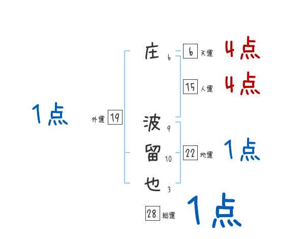 庄波留也さんの画数の鑑定結果