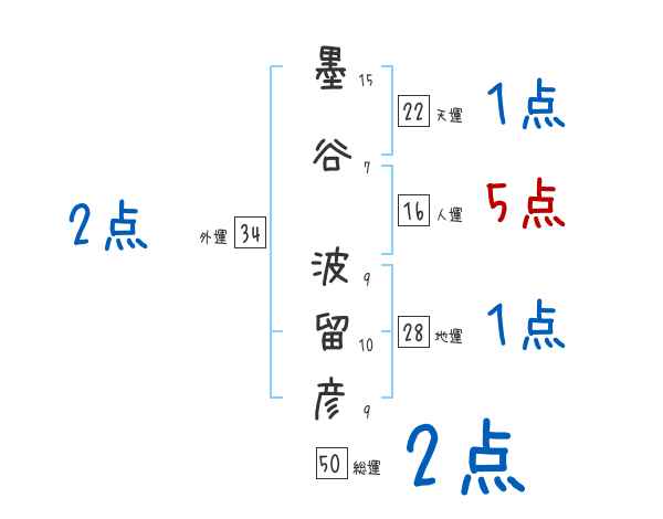 墨谷波留彦さんの画数の鑑定結果