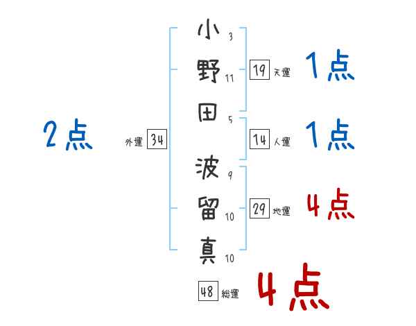 小野田波留真さんの画数の鑑定結果