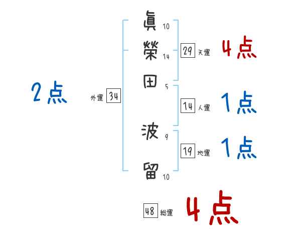 外運![]() | 眞榮田波留さんの外運は34画の2つ星!独創性に優れるが、自尊心が強く災難に注意しましょう。 生活面を象徴する運勢です。外部から受ける影響力を表し、結婚運、家庭運や職場、環境への順応性を表します。 |
