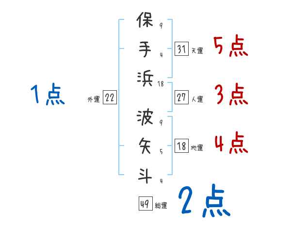 保手浜波矢斗さんの画数の鑑定結果