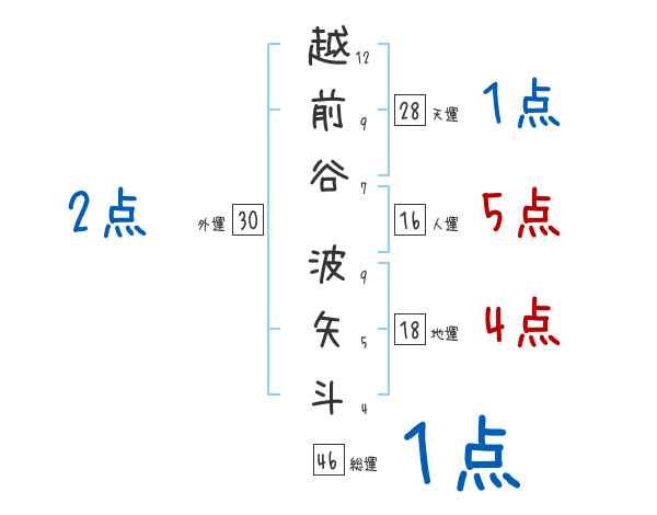 越前谷波矢斗さんの画数の鑑定結果