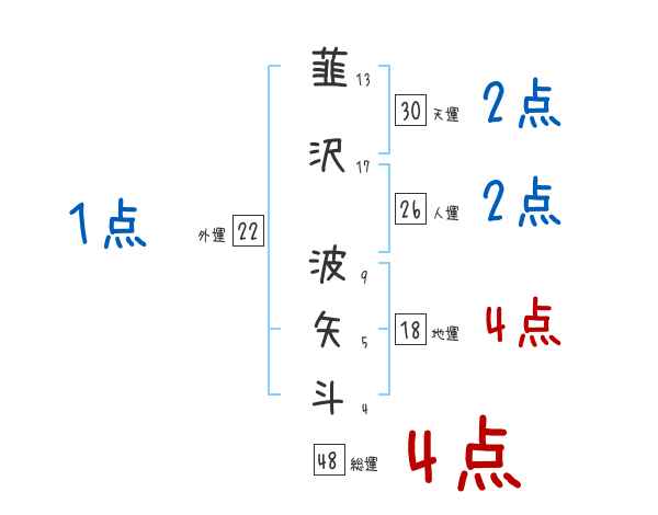 韮沢波矢斗さんの画数の鑑定結果