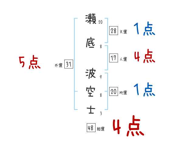 瀬底波空士さんの画数の鑑定結果