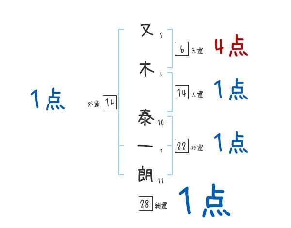 又木泰一朗さんの画数の鑑定結果