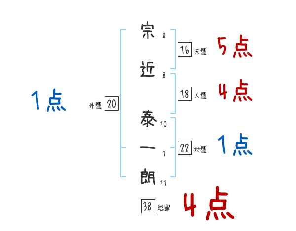 宗近泰一朗さんの画数の鑑定結果